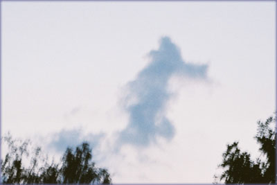 Jetzt keine Experimente mehr, laufen an der Autostraße. Beeindruckendes Spiel von Wolken und Sonne. Eine Stadtrandsiedlung. Es ist hier merkwürdig ruhig. Die Gärten sind leer, die Schaukeln stehen still, kein Hund kläfft. Nichts. Vielleicht sind sie alle in Urlaub gefahren.